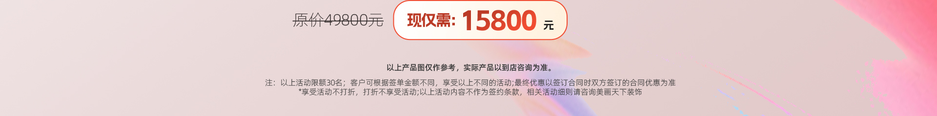 以上活动内容不作为签约条款,所有产品图片仅作参考,相关活动细则请咨询美画天下装饰